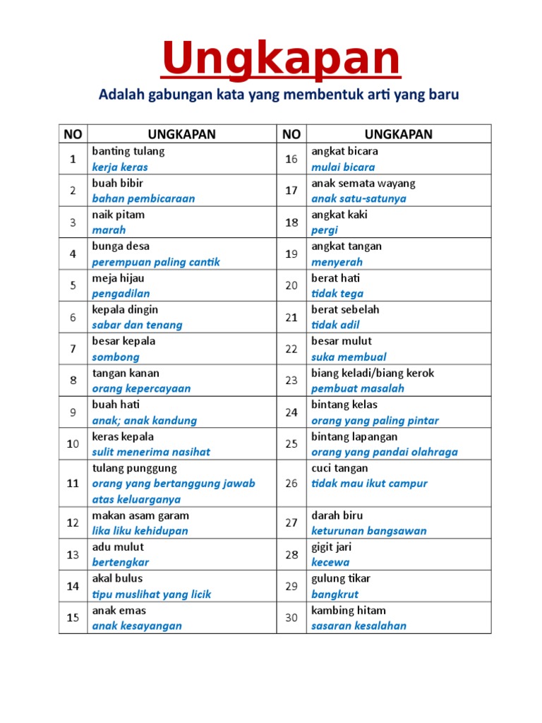 Oleh pakdosen Diposting pada 5 Juli 2021. Contoh Ungkapan Bahasa Indonesia Ungkapan atau biasa juga disebut Idiom adalah gabungan kata yang membentuk arti baru dan tidak dapat ditafsirkan dengan kata pembentuk dasarnya. Ungkapan Idiom Pengertian Menurut Para Ahli Jenis dan Contoh Untuk pembahasan kali ini kami akan mengulas mengenai Ungkapan Idiom yang dimana dalam hal ini meliputi pengertian menurut para.